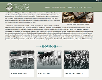 Webhelper designed, developed, powers and supports the website for the Russian River Historical Society, a nonprofit organization dedicated to preserving the history of the Russian River region.